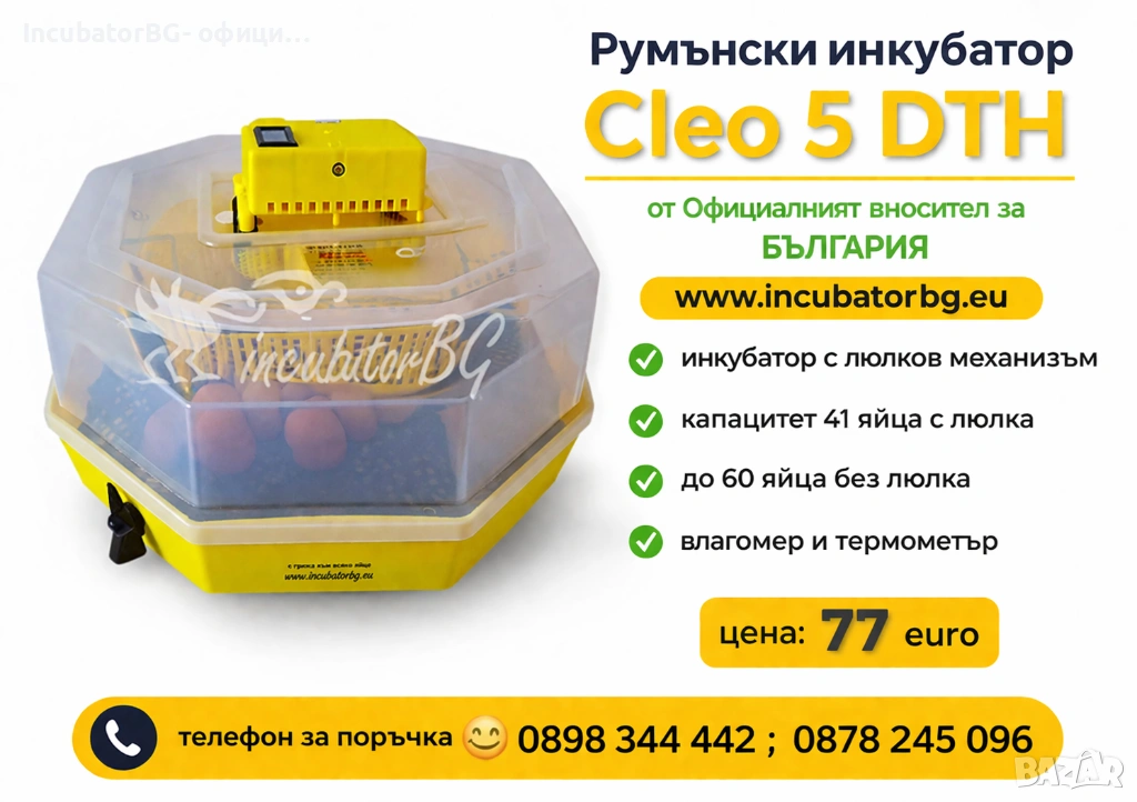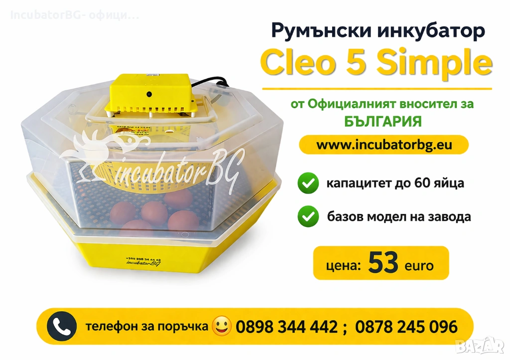 Клео 5 от фициалният вносител на румънски инкубатори за България. Гаранция!