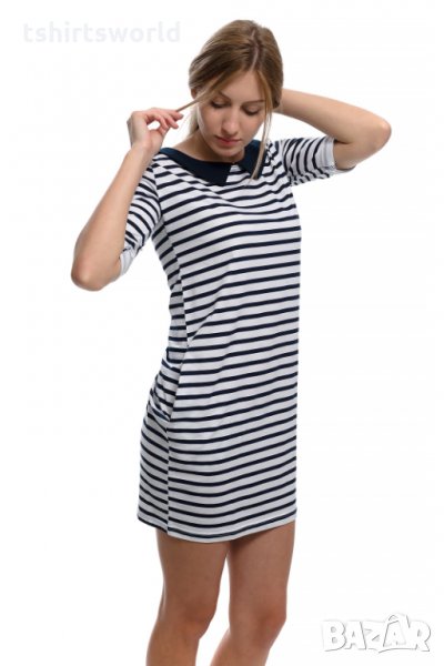 Страхотна нова дамска свободно падаща моряшка рокля с яка