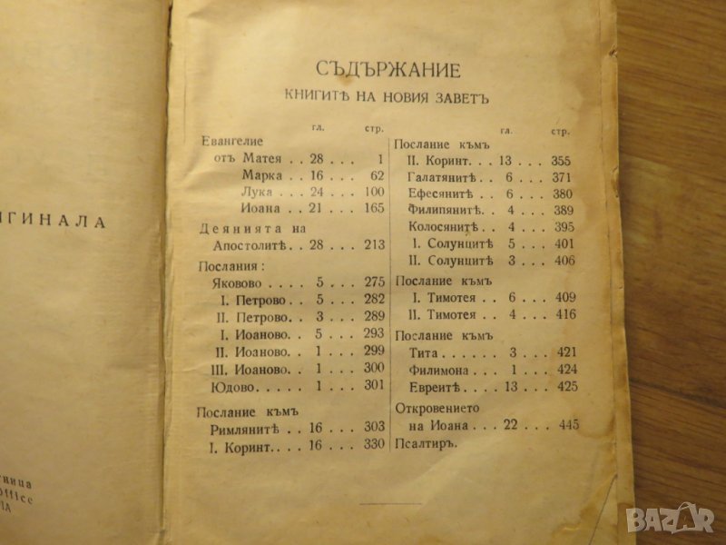 библия Новиятъ заветъ на нашия господъ Исусъ Христоса и псалмитъ - изд.1938г - 588 стр. - точно споредъ оригинала - притежавайте тази свещенна книга и нека бог и силата му винаги бъдат с вас и да ви пазят и закрилят !