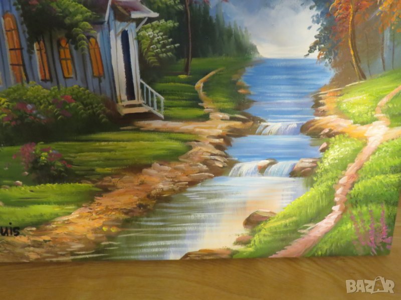 Маслена картина Къщичка в планината - успокояващата магия на зеленината и нежното румолене на ручейчето - успокояващо допълнение към вашия дом, офис