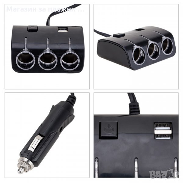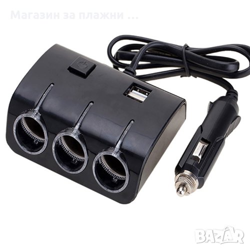 Модел: 1506 2USB-та изход за зареждане на мобилни телефони: PDA, iPod, MP3 плеъри и др. Цената е за 1бр. Работно напрежение: 1200mA. 3 броя стандартни гнезда за запалка с напрежение 12V-24V. Вграден предпазител. Изходен ток (освен USB-то) DC 5A. Изходна мощност (освен USB-то) -120W Дължина на кабела- приблизително 70см. С бутон за включване и изключване