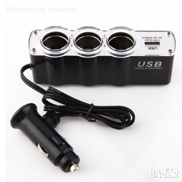 Троен разклонител за запалка за кола и USB → Обява 28384109