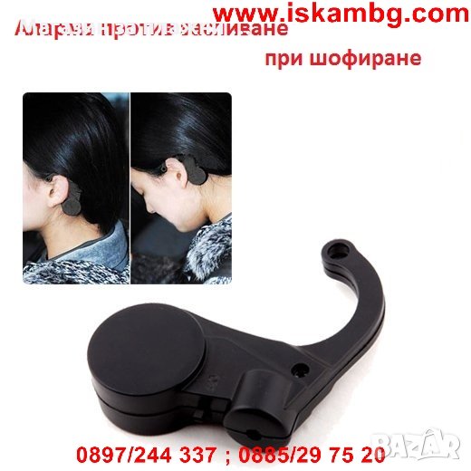 Изключително полезно за безопасно шофиране и предотвратяване на пътно-транспортни произшествия. Алармата работи на принципа на баланса и се задейства при внезапно навеждане на главата напред, или встрани. При поставяне на устройството зад ухото чрез завъртане около него се избира желаната позиция. По този начин се тества при какво навеждане на главата се включва алармата. При нагласа на желаната позиция може да бъдете сигурни, че няма да заспите. Аларменото устройство е сигурно средство срещу заспиване при шофиране през нощта на дълго изморително разстояние.