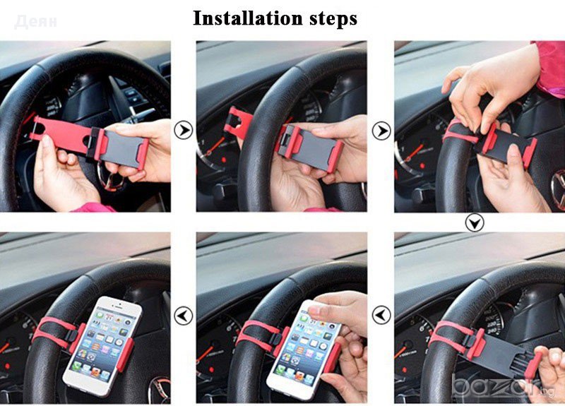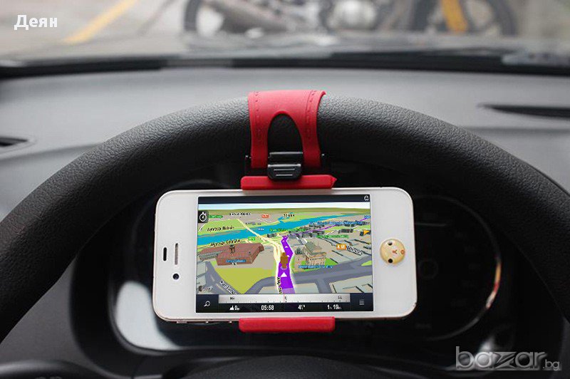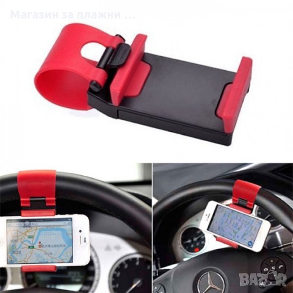 Представяме ви удобна поставка, произведена от усилена пластмаса, която се закрепва към волана на вашия автомобил. Стойката разполага с регулируеми рамена, с цел да бъде съвместима с повечето ни познати мобилни устройства. Пластичният дизайн позволява безпроблемно, лесно и бързо закрепяне към различни размери волани, без допълнителна нужда от инструменти. Стойката е толкова компактна, че може да бъде местена навсякъде по волана, за да се избегне евентуално неудобство при шофиране. Силиконовите държачи осигуряват надеждна гаранция, че поставеното устройство няма да бъде надраскано или повредено от механични въздействия.