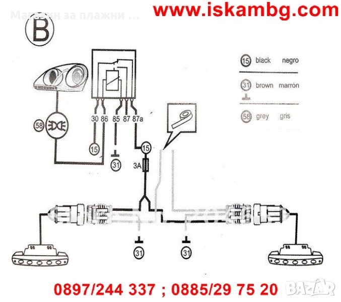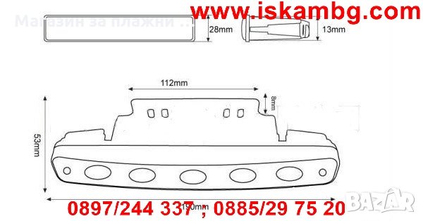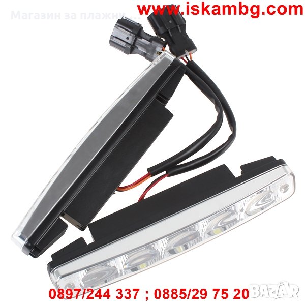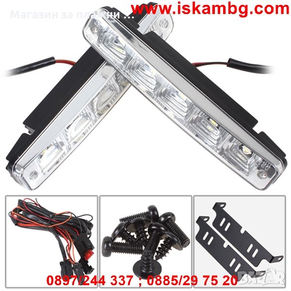 Комплекта включва: 2х5 диодни лампи, регулируеми скоби за монтаж и кабели.