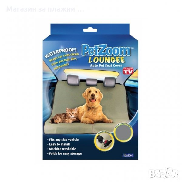 PetZoom Loungee е най-разумната защита за задната автомобилна седалка от косми на домашни любимци, мръсотия, кал, драскотини от нокти и всякакви щети по тапицерията на автомобила! Произведена от водоустойчив, специален материал, който може да се пере в пералня. Постелката Pet Zoom Loungee се слага за секунди, а след употреба се сгъва лесно. Съвместима с всички видове автомобили! Край на замърсените, миризливи седалки! Вашият домашен любимец ще се чувства комфортно, а автомобила Ви ще е безупречно чист!