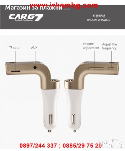 FM Bluetooth трансмитер MP3 Player за автомобил, Зарядно, Блутут USB модел 2