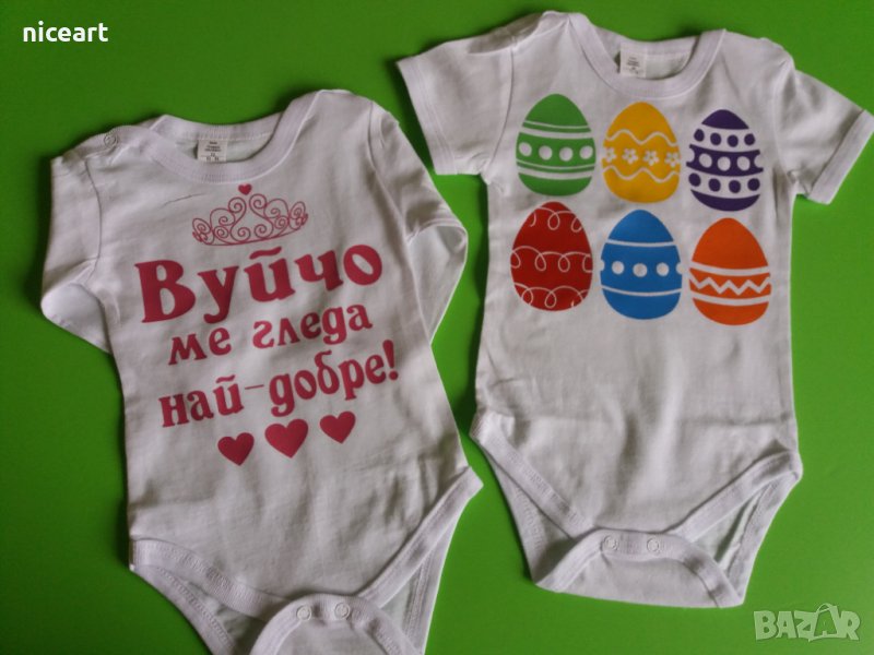 При нас може да поръчате великденско бебешко боди с име или с яйчица ,в бяло или червено-цена 16 лв