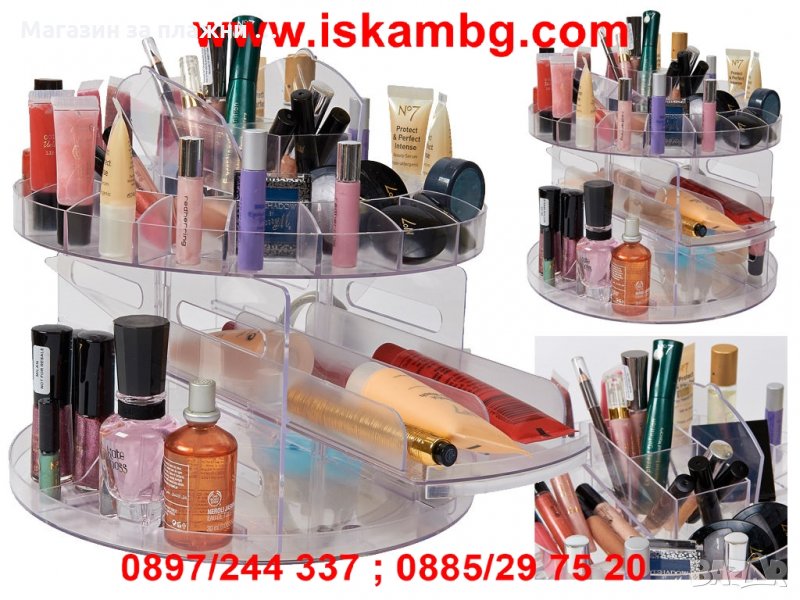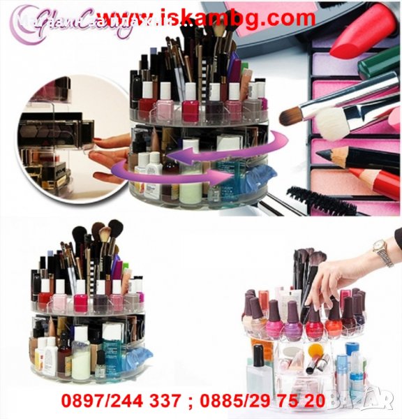 Кошмар за всяка жена е да търси любимото си червено червило сред купчина гримове! Това със сигурност може да съсипе деня и! Представяме ви перфектното решение за всяка дама - спретнат въртящ се органайзер за съхранение и сортиране на гримове, продукти за красота и много други аксесоари!