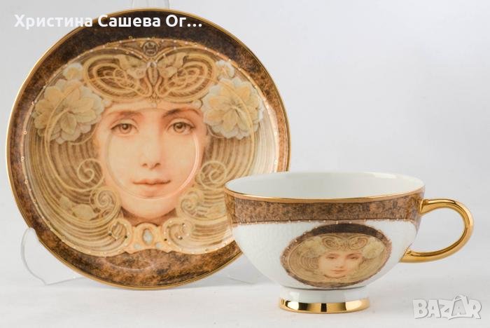 Изискан комплект за чай или кафе, чаша с чинийка от фин костен порцелан.