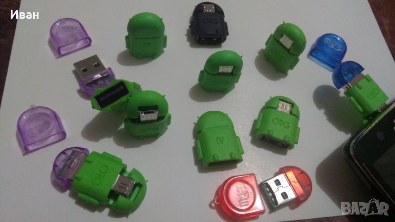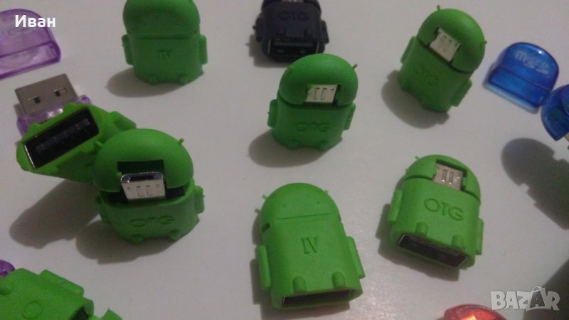 Продавам преходници зелено или черно човече андроид с изходи микро УСБ / УСБ 2.0 за връзка с УСБ кабел , Флаш памети и други остройства към мобилни устройства като смартфон , таблет и други, които притежават микро УСБ изходи.