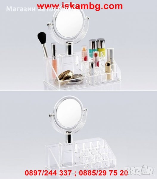 Прозрачен козметичен органайзер с огледало МАЛЪК