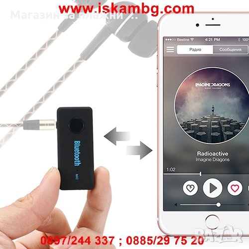 Можете да свържете към телефон, таблет, аудио система, мп3 плеър и много други които поддържат блутут.