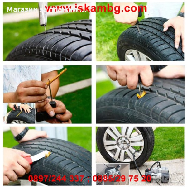 Авариен комплект за лепене на безкамерни гуми, комплект за спукани гуми.