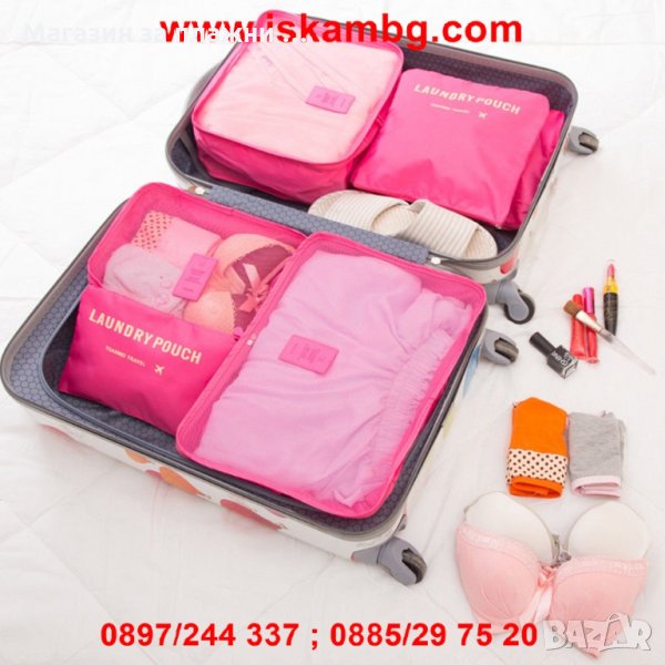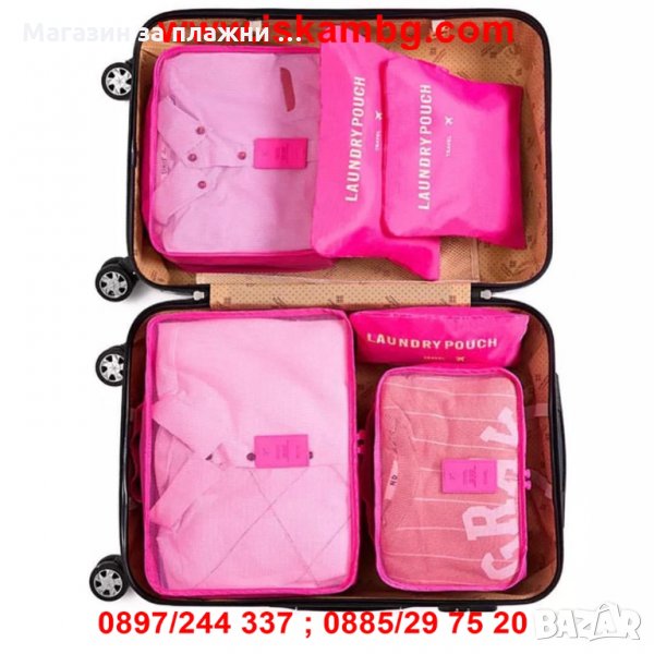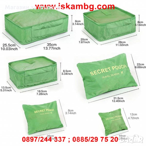 Забравете за претъпканите куфари, измачканите дрехи и разхвърляният багаж! Представяме ви този страхотен комплкет органайзери, който е всичко от което имате нужда, когато подреждате багажа си. Той съдържа 3 чанти с цип и дръжка с различен размер, идеални за дрехи, бельо, обувки и др, както и 3 бр. несесери, които са подходящи за по-дребните неща като кабели, зарядни, козметика, документи и др. Благодарение на органайзерите багажът ви е подреден, дрехите ви ще останат изгладени и спретнати и ще знаете къде е всичко! Направете подреждането на багажа забавно и лесно!