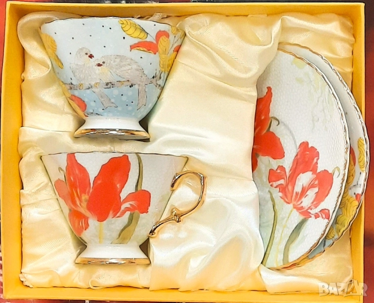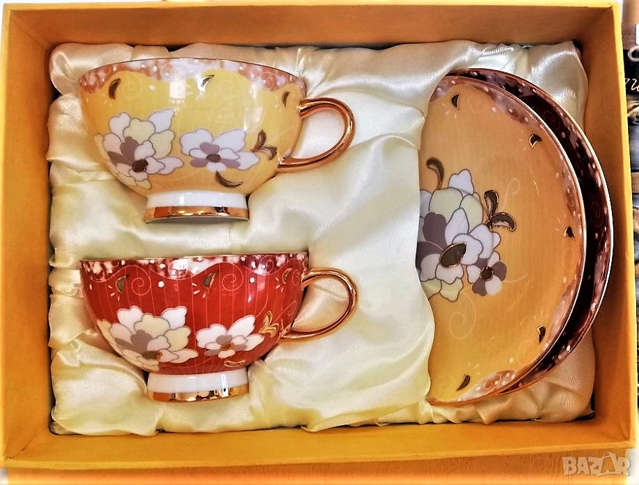 Предлага се в кутия за подарък по 1, 2 или 6 бр. чаши с чинийки