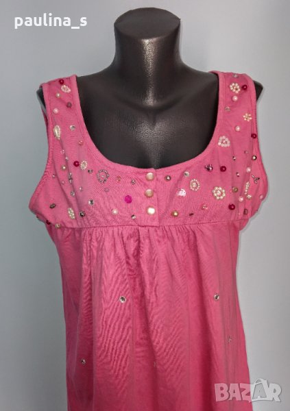 Ръчно декорирана туника от плътен памук в розово. Материята е еластична и покрива няколко размера, хипоалергична и симпатична. Декорациите са уникални, отдолу е без оверлог.