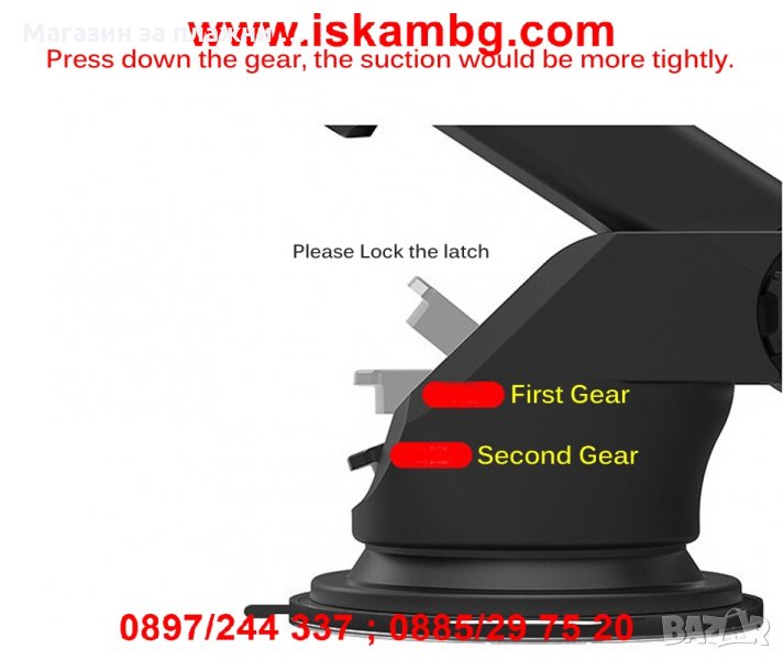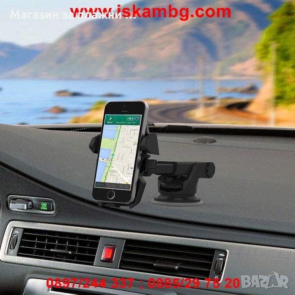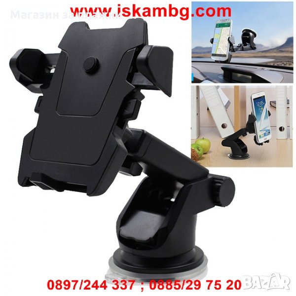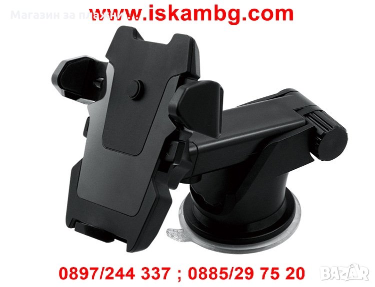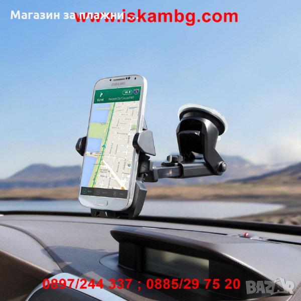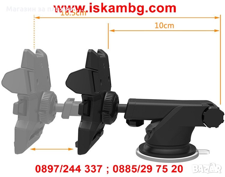 Универсална стойка за мобилни устройства с удължено рамо за по-добра видимост. Поставката е съвместима с всички модели телефони с размери от 5.5см. до 8см.