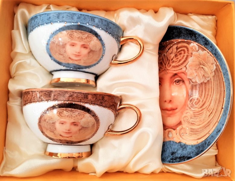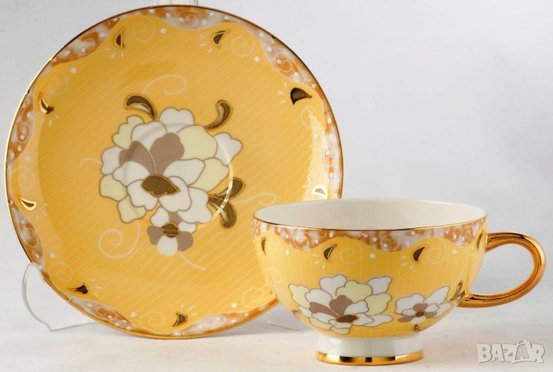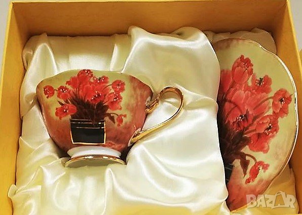 Красив комплект за чай или кафе чаша и чинийка костен порцелан .