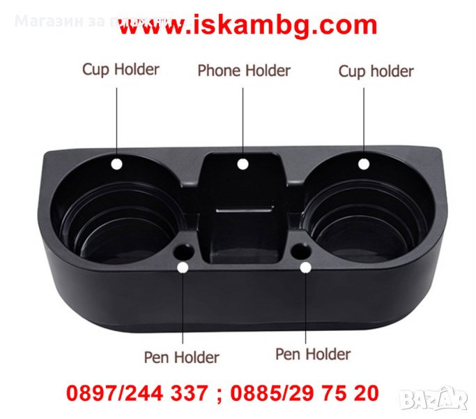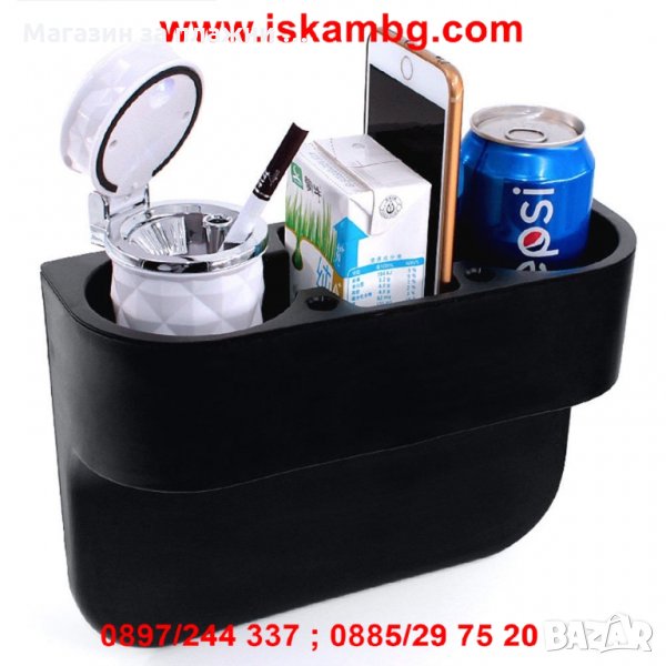По този начин можете да складирате допълнителните си автомобилни аксесоари или да поставите чаша с любимото си ароматно кафе, вода или друга освежаваща напитка.