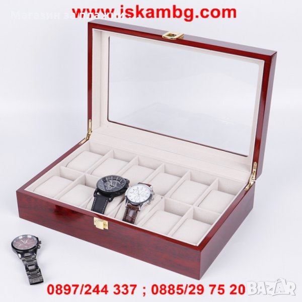 Покритието му е снабдено със стъкло, което е идеално за собственика да провери колекцията си от фини часовници, без да отваря кутията.