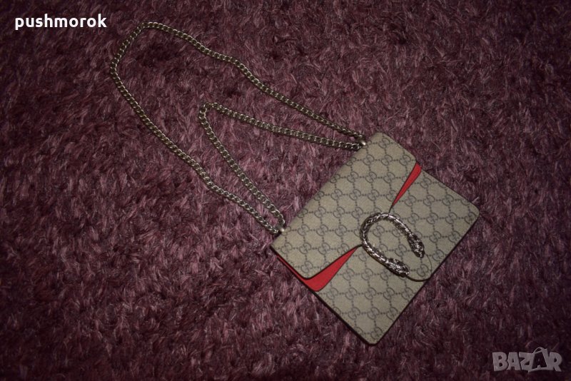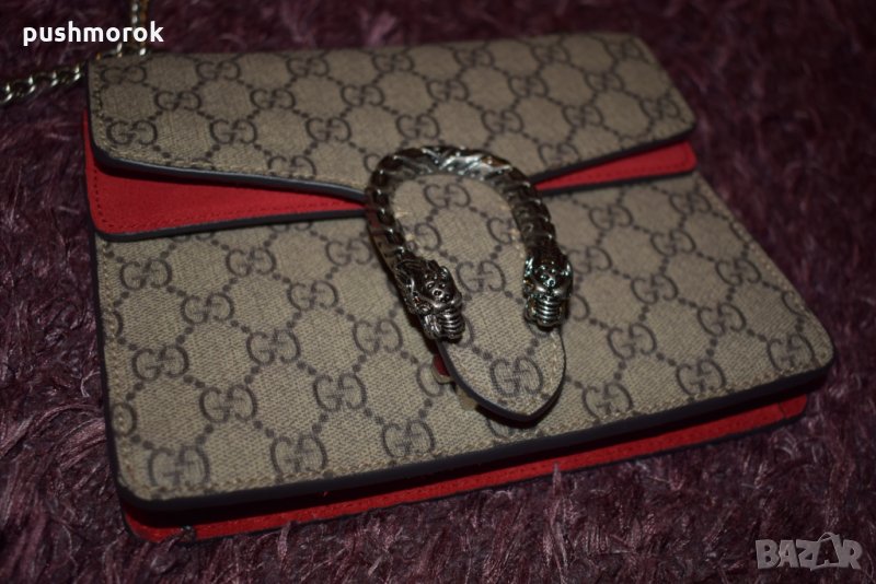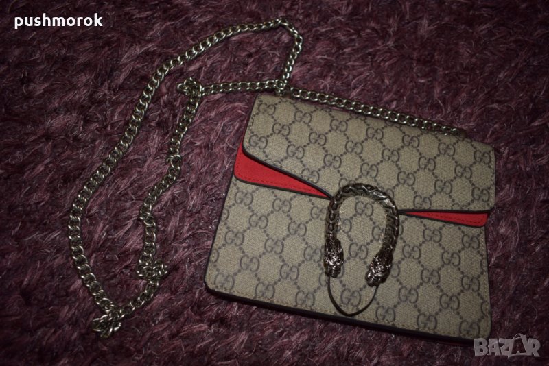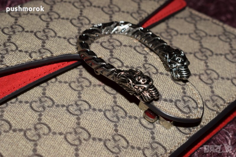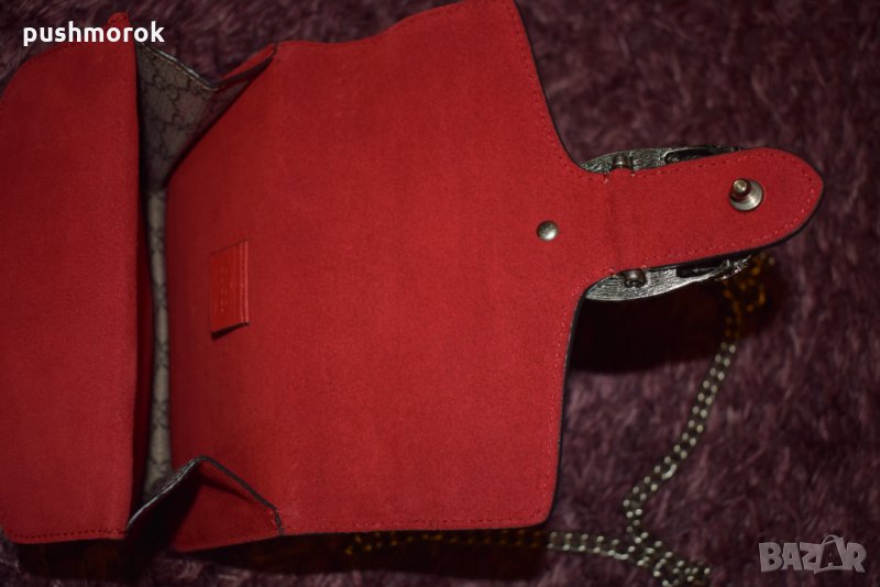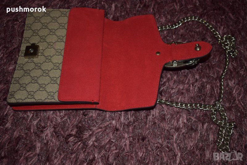Мини структурирана чанта със затваряне от тока -тигрова глава. Плъзгащата се каишка на веригата може да се носи по много начини, като се променя между рамо и горна дръжка.