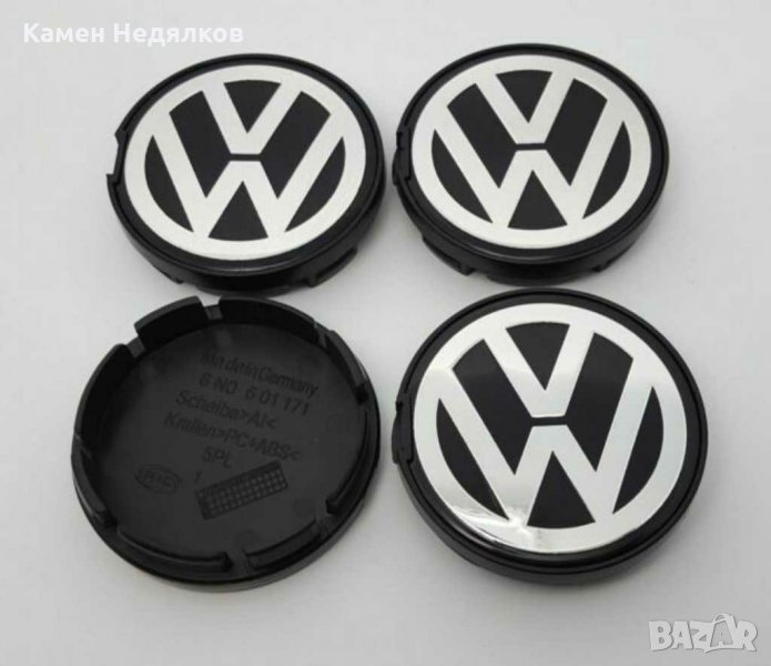 Комплект от 4 капачки за джанти за Volkswagen - Черни/Сребристи