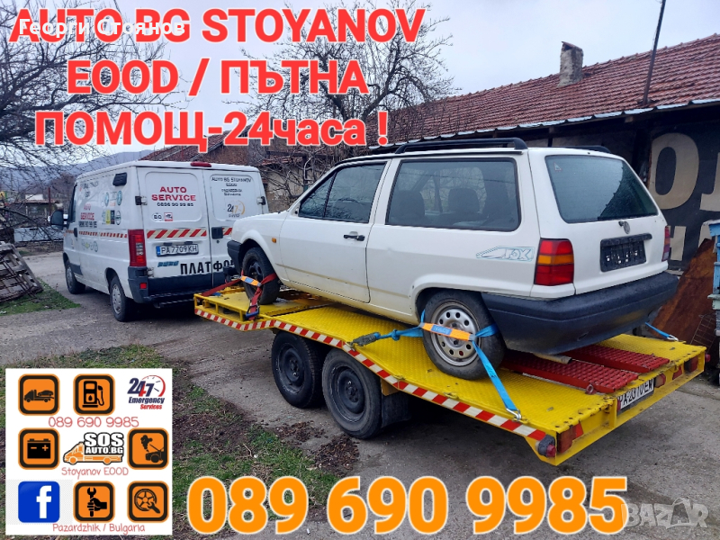 Фирма - АУТО БГ СТОЯНОВ ЕООД гр.Пазарджик извършва следните дейности: Извършване на пътна помощ с