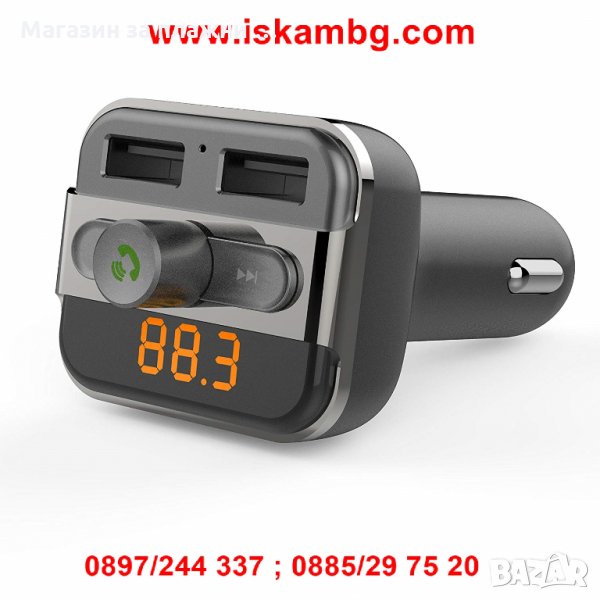 Автомобилен Bluetooth FM трансмитер с 2бр USB зарядно за GSM Bluetooth