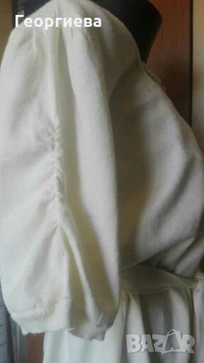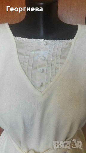 Блузата е много мека и много красива!Цветът е екрю и е точно, като на снимките.Нова е, без хартиен етикет и цената е съобразена с това.