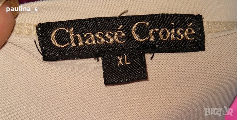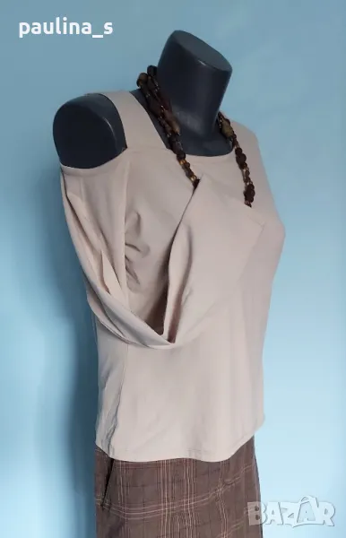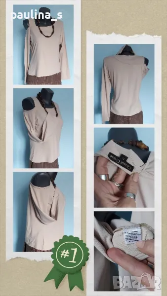 1. Колаж / L / 2XL / "Chasse Croise" цвят пудра. Цената е крайна 19,99лв. Екстравагантна блуза с открито рамо. Моделът е втален и елегантен. Материята е еластична ликра и покрива няколко номера. Перфектна, нова, без дефекти и етикет.