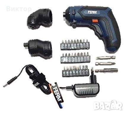FERM CDM1135, захранвана от 4 V 1.5 AH литиево-йонна батерия, USB кабел за зареждане с одоптори за зазиване под ъгъл и на трудноостъпни места
