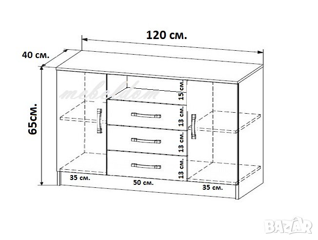 размери: 120 / 40 / височина 65см. (виж схемата)