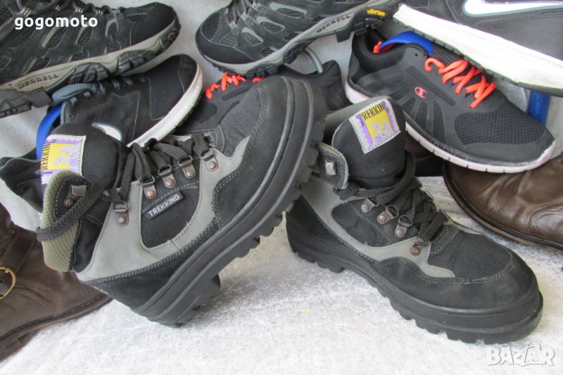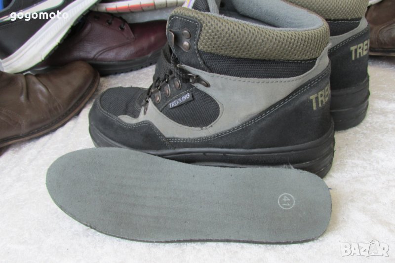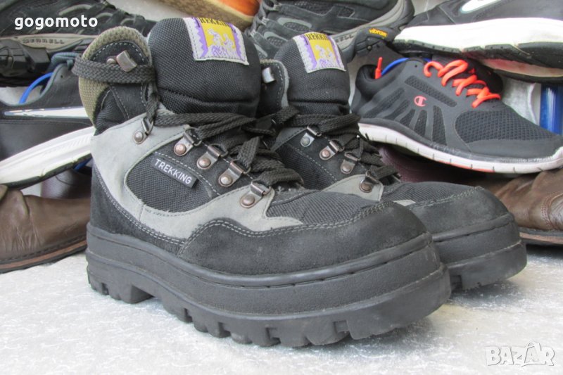 - омекотен конч, омекотен език, ИДЕАЛНО запазени, малко употребявани, без забележки. Без скъсано, без разлепено, без разшито! Моля, имайте в пред вид, че снимките са правени от 20 см., за да са максимално подробни, качествени, а обикновено обувките се гледат от 2 м. С гарантирано качество от унисекс, туристически маратонки боти, кецове 40 - 41 кец TREKKING®,естествен велур, GOGOMOTO.BAZAR.BG® ,на ниска цена.