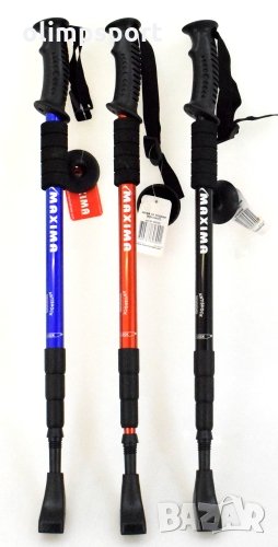Туристическа щека телескопична нова. Четирисекционна конструкция с въртящо заключване. Ръкохватки с анти-плъзгащо покритие. Максимална дължина: 120 cм. Дължина в сгънато положение: 56 см. Размер профил: Ф18мм. Тегло: 370 г. Комплектът включва накрайник за лятото и каучуков накрайник. Щеката разполага с два варианта за хващане. Удобна и практична. Система, която обира част от вибрациите при натоварване. Ударопоглъщаща. Размерите и теглото на щеката са съобразени с изискването да е компактна и лека за по-удобно пренасяне. Цвят: различни цветове. Преди употреба проверявайте дали щеката е здраво затегната. При разпъване внимавайте да не преминете след обозначението STOP