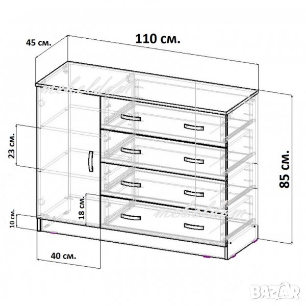 размери: 110 / 45 / височина 85см.(виж схемата)