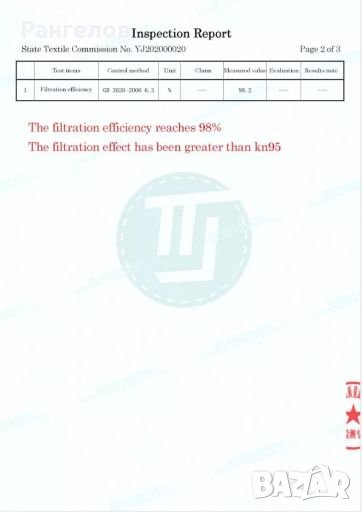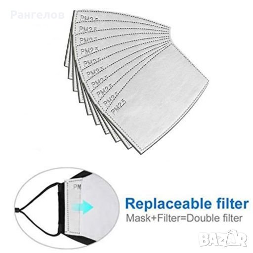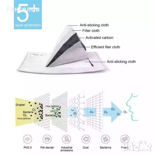 Карбонов 5-слоен филтър (активен въглен) PM2.5/K N95 - N99/FFP3/ФФП3 спиращ най-малко 98,99% от въздушните частици включително вируси, бактерии, токсични прахове, метални изпарения и мъгли/аерозоли на основата на вода/масло и други.