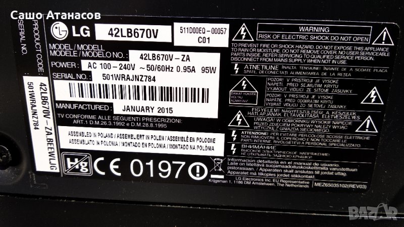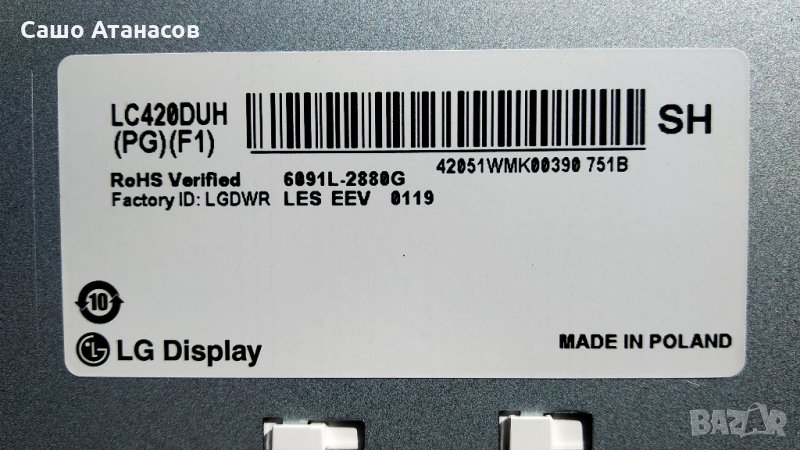 LG 42LB670V със счупена матрица ,LGP42-14LPB ,EAX65384004(1.5) ,LGSBW41 ,LC420DUH (PG)(F1)