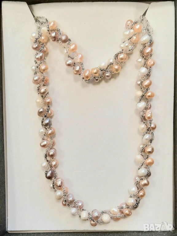 Красиво колие с тъмни, естествени перли - 45 см. с гривна от преплетени, култивирани перли с мъниста завършващи с антиалергична закопчалка с магнит.