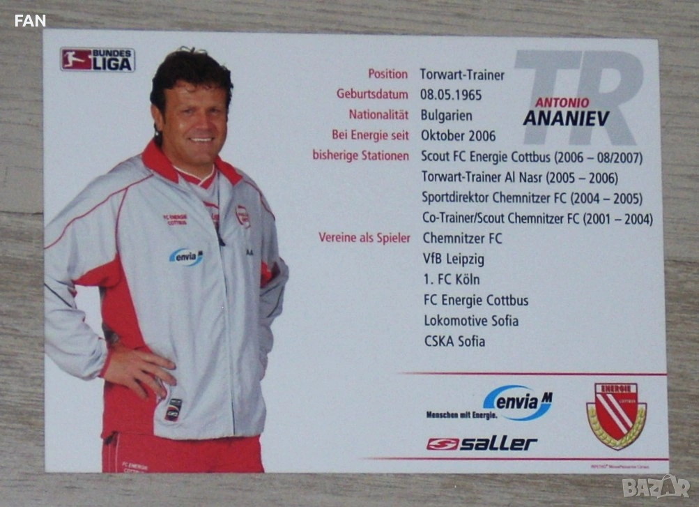 Антонио Ананиев - картичка с ОРИГИНАЛЕН автограф Енерги Котбус, Локомотив София, Славия, ЦСКА, Кьолн → Обява 28422046