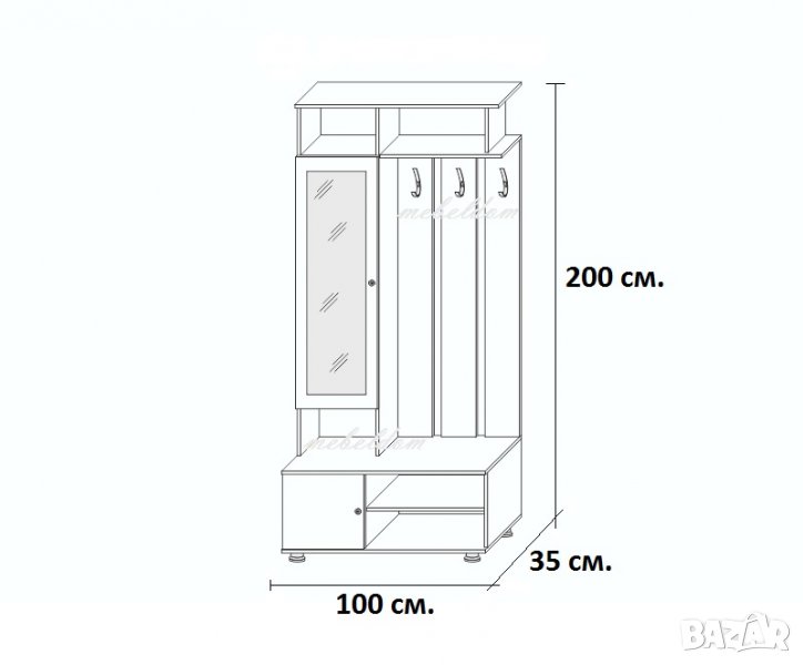 размери: 100 / 35 / височина 200см.(виж схемата)