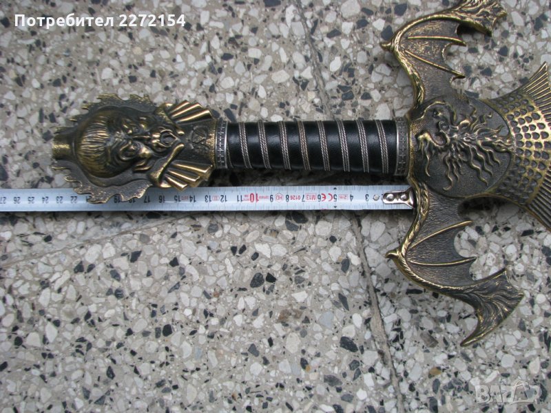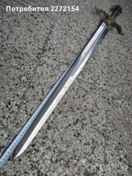 Мечът е нов и изработен по средновековен модел.НЕ Е БУТАФОРИЯ,а е истински.Острието е двуостро,професионално заточено и от двете му страни,е като бръснач.Дръжката е бронзова с оплетки и без луфт.Мушка,реже и сече.Може да се ползва за възтановки,колекция и др. За друг град изпращам по Еконт след като получа 10 евро капаро .