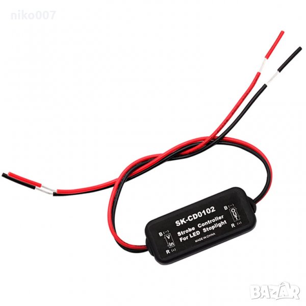 Универсален модул за мигаща ЛЕД стоп светлина-Реле за стоп светлини - мигащи. Подходящ за всички превозни средства с инсталация 12V/24V.Крушките трябва да са лед.При натискане на спирачката крушките започват да мигат пет пъти