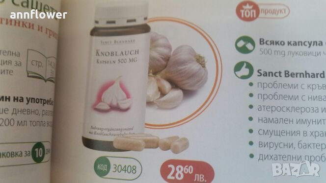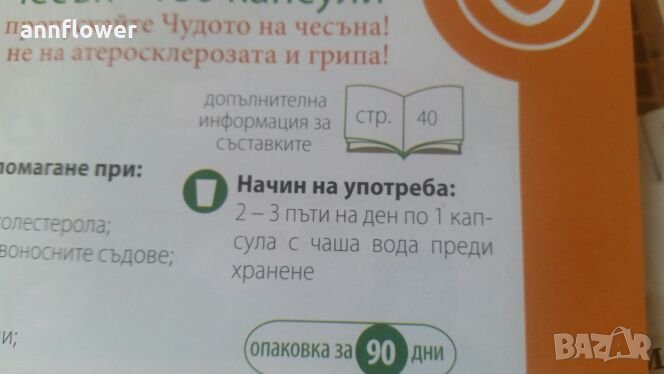 Всяка капсула съдържа 500 mg луковици чесън на прах.