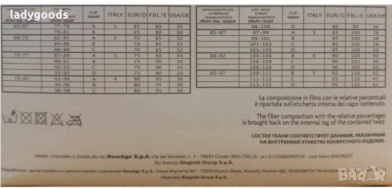 Сексапилен сутиен изработен от гладък микрофибър на италианската марка Laura Biagiotti.Сутиена е с твърди и гладки чашки с малка подплънка в долната част на чашките. Чашките са по-дълбоки и с банели.Презрамките се свалят, регулират се