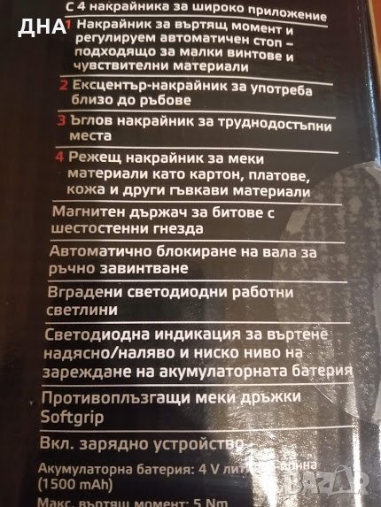 С 4 приставки, осветление, зарядно, в практична транспортна кутия.Винтоверта е чисто нов.Има и гаранция.