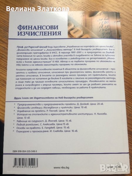Финансави изчисления-Икономика-проф.д-р Радослав Цончев.Издателство:”Нов Български Университет”София 2009г.,2013г. 205с.