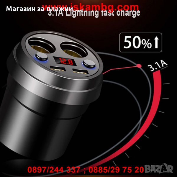 ⇒ Максимална изходна мощност: 60 W, зареждане на 2 устройства едновременно в колата