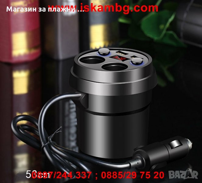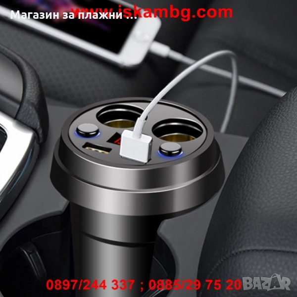 Зарядно за кола 3 в 1 : разклонител за гнездото на запалката, волтметър и USB зарядно