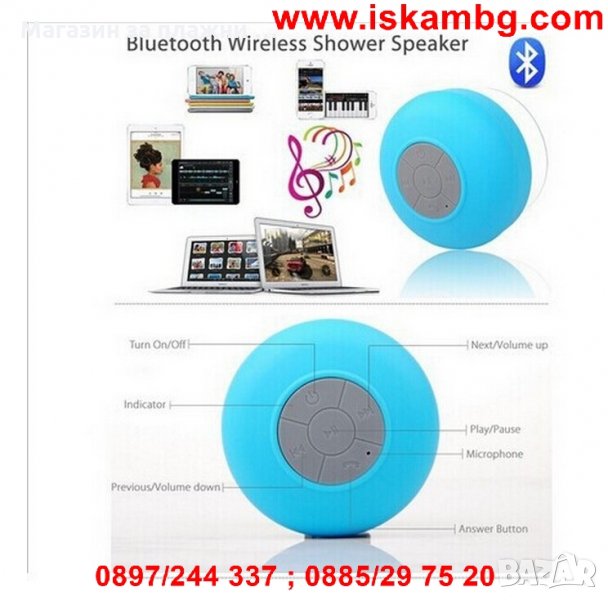 Говори по телефона и слушай любимата си музика, докато си в банята под душа! Купи безжичен, водоустойчив Bluetooth високоговорител с вендуза и вграден микрофон. С тази мини Bluetooth тонколонка сега е възможно да се насладите на музиката си навсякъде, на закрито или открито, без използването на кабели, при всякакви климатични условия, дори когато се къпете. Подходяща и за шофиране. Уникален водоустойчив дизайн.
